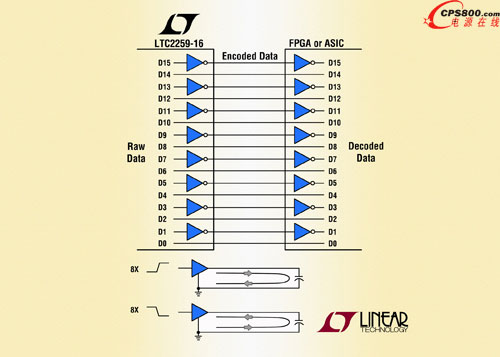 LTC2259-16 采用 6mm x 6mm QFN 封裝,內置一個時鐘占空比穩定器電路,以便于實現非 50% 的時鐘占空比、可編程數字輸出定時、可編程 LVDS 輸出電流和任選的 LVDS 輸出終端。這些特點組合起來,以使 ADC 與數字接收器之間的數據傳輸變得更加靈活。