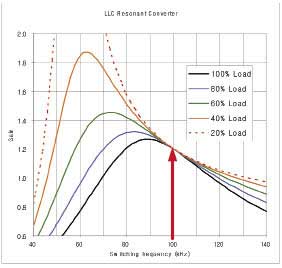 轉(zhuǎn)換器拓?fù)涞倪x擇對(duì)效率和輻射EMI都至關(guān)重要,因?yàn)楣β书_關(guān)越傾向于硬開關(guān),產(chǎn)生的dI/dt和dV/dt就很大,同時(shí)電流和電壓就越高,這會(huì)導(dǎo)致開關(guān)頻率諧波的大量產(chǎn)生。在各種拓?fù)渲校C振或準(zhǔn)諧振拓?fù)涠碱H具優(yōu)勢但較難設(shè)計(jì),尤其是諧振拓?fù)洌茈y在寬泛的負(fù)載范圍上實(shí)現(xiàn)。下文中描述的LLC拓?fù)渚哂性趯捸?fù)載范圍內(nèi)有限的開關(guān)頻率變化以及軟開關(guān),很容易解決這一問題。