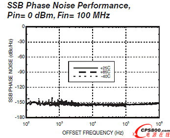 在微波頻段Hittite公司集成VCO的PLL芯片有HMC764,HMC765,HMC783,HMC807,工作頻段涵蓋了7.3-13.4GHz。HMC764在10kHz頻偏處的相位噪聲約為-102dBc/Hz,在分數模式下,其RMS Jitter為196 fs 。