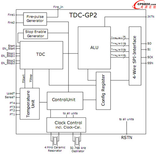 下面以最常用的GP2為例,說明ACAM TDC的具體應(yīng)用。我們先看一下GP2的內(nèi)部結(jié)構(gòu),如下圖3: