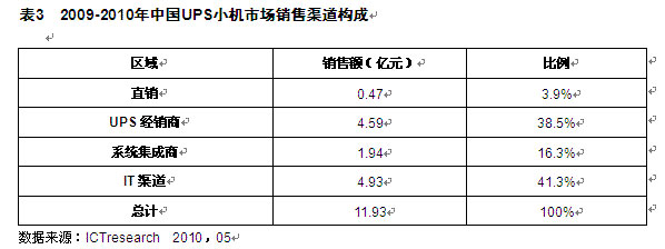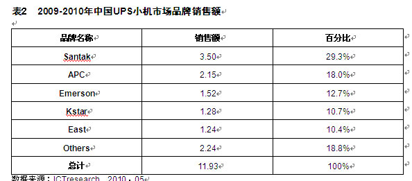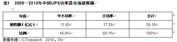 根據ICTresearch的研究統計,2009年全年UPS中小功率段的產品銷售額仍然達到了11.93億元,占整體UPS市場的40.9%,可見小機市場仍然占據著相當大的市場份額。