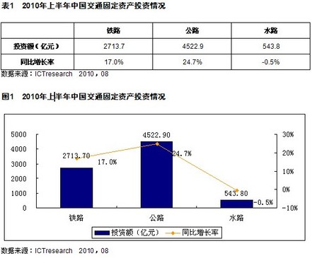 軌道交通的發(fā)展一直是行業(yè)備受關(guān)注的話題,在“后經(jīng)濟(jì)危機(jī)時(shí)代”,中國(guó)政府采取的四萬億投資計(jì)劃的效果逐漸顯現(xiàn),在交通領(lǐng)域的基礎(chǔ)投資方面,2009年整體投資出現(xiàn)了加速的跡象。到2010年上半年,交通領(lǐng)域的固定資產(chǎn)投資仍然保持著較高的增長(zhǎng)速度。持續(xù)的投資不僅給鋼鐵、水泥等傳統(tǒng)行業(yè)帶來了增長(zhǎng)的動(dòng)力,同時(shí)也給服務(wù)于交通行業(yè)的信息化企業(yè)帶來了巨大的發(fā)展機(jī)會(huì)。