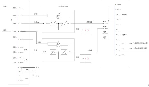 中國電信四川公司新鴻路10000號場地為四川省的核心樞紐,供電一旦出現異常或中斷將會帶來全省10000號系統的癱瘓遺以及不可估量的直接經濟損失和社會負面影響,因此對供電系統的可靠性要求極為嚴格,機房采用雙路高壓供電、1+1冗余UPS電源、大功率的柴油發電機提供可靠的后備供電能力,從而保障充足、持續的電力供應。本次項目UPS電源采用2臺100kVA 1+1并機冗余供電方式設計,UPS輸出分別向1F、3F、5F、8F 配套的10000號系統基礎設施及網絡設備負荷提供高可靠電源保障。臺達HIFT(海福)UPS電源系統的設計平面圖、系統圖 、現場安裝圖片分別如下。