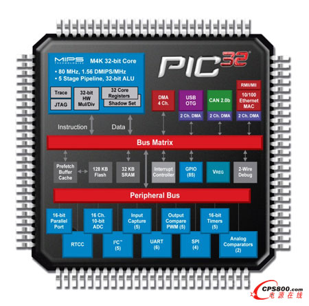 MIPS科技公司市場營銷及業務發展副總裁Art Swift表示:“Microchip最大限度地提高了MIPS32 M4K內核的原始性能,同時利用其高靈活性優勢創建了一個32位單片機架構,超越了苛刻的嵌入式設計要求。Microchip憑借這個全新PIC32系列的性價比及其廣泛的集成外設設置,為設計人員提供了極大的價值。”