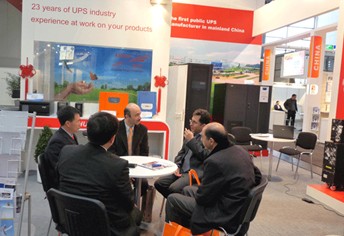科華恒盛此次展出了一系列高端UPS、模塊化UPS,以及太陽能逆變器,小型風(fēng)力放電機(jī)等。新能源一直能源危機(jī)下各國最關(guān)注和支持的領(lǐng)域,科華恒盛歷經(jīng)多年技術(shù)研發(fā),成功推出太陽能逆變器和小型風(fēng)力發(fā)電機(jī),首次在海外展會亮相即吸引了大批業(yè)界人士和展會參觀者,尤其是3D風(fēng)力發(fā)電機(jī)更引人注目,幾乎所有路過的參觀者都停下來仔細(xì)觀看、拍照。值得一提的是,本次展會,有歐洲當(dāng)?shù)孛襟w對科華恒盛旗下風(fēng)力發(fā)電機(jī)進(jìn)行了專題報道。
