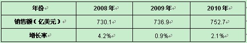表1 2008-2010年世界數(shù)據(jù)中心市場銷售規(guī)模