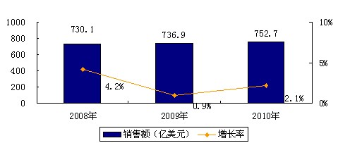 圖1 2008-2010年世界數(shù)據(jù)中心市場銷售規(guī)模