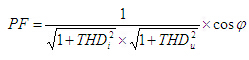 。從該式可以看出,當電流、電壓發生畸變時,其功率因數會隨著減小。