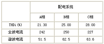 圖2所示為電壓波形及其諧波表格。電壓出現畸變,主要原因是畸變的電流在線路諧波阻抗上產生的,由于電流畸變十分嚴重,當畸變的電流流經線路阻抗時,會產生畸變的電壓降,根據基爾霍夫電壓定律可知,在該配電系統上的其他設備也必定是連接到畸變的電壓上,從而受到嚴重影響。