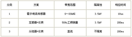 霍爾電流傳感器結合了電流互感器和分流器的所有優點,克服了互感器和分流器的不足,如表1所示: