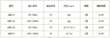 在傳感器行業內,江蘇安科瑞嚴格按照JB/T 7490-2007《霍爾電流互感器》行業標準規定的各項要求,相對于同行采用插針式接線不同, 一律采用綠色可插拔端子現場接線方便、可靠。一般情況下,可以根據輸入信號、內孔尺寸來選擇霍爾電流傳感器 。開環霍爾電流傳感器型號選型如表2所示: