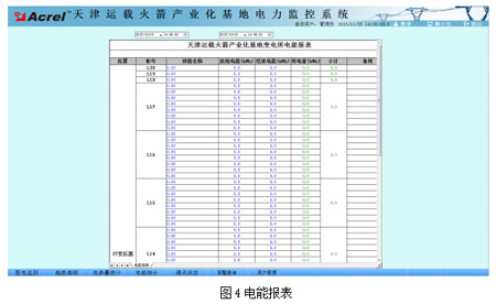 為了實現對本大樓內各回路用電量的監管,系統設計了電能管理報表,系統通過對有功電度的采集,按照回路名稱的不同,自動生成日報表、月報表和年報表并有報表打印功能,并可對某一回路的某一時間段內的用電量進行查詢,可以幫助物業建立有效的用能管理考核制度。通過系統的建設和制度的建立,使各入駐管理人員節能意識大大提高,有效的節約了能源消耗。