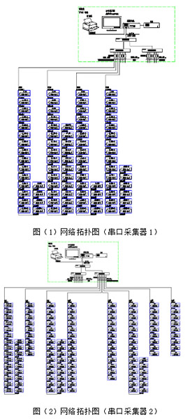 本監控系統主要實現常熟濱江新城鄰里中心樓層配電箱和變電所進出線進行用電監控與電能管理;監控范圍為分布于樓層各電井配電箱的儀表和變電所低壓進出線儀表,對于這些多功能儀表進行遠程實時監控和電能管理。該系統總計有210只儀表(其中102臺為PZ80-E4/C),分12條總線,通過串口服務器的采集,傳輸至值班室監控主機,實現總線上儀表與監控主機的數據連通。