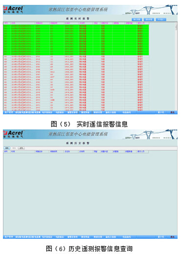遙信和遙測報警功能,主要完成對低壓各出線回路的開關運行狀態和負載進線監控,對開關變位和負載越限彈出報警界面指示具體的報警位置并聲音報警,提醒值班人員及時處理。負載越限值在相應權限下可自由設置。具備歷史查詢功能。見圖(5)和圖(6)。