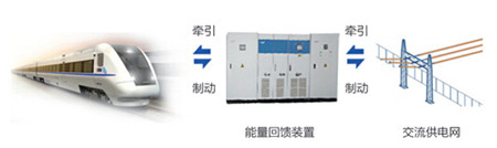 ●當軌道交通列車制動階段運行時,作為逆變回饋的功能,吸收由于列車制動而引起的直流接觸網電壓上漲的能量,將該直流能量通過逆變器反饋到電網,供電網其他用電設備使用。