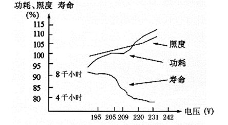 氣體放電燈的照度、功耗、壽命與電壓的關系曲線