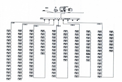 現場配電室內共有32只YHE儀表,樓層有95只儀表,分為6條RS485總線接至串口服務器,串口服務器通過網線拉至值班室連接到監控主機實現總線上儀表與監控主機的數據連通。