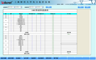 對用電量的管理以報表形式呈現(xiàn),該報表可以呈現(xiàn)系統(tǒng)運行期間的任意時間段內的各回路用電,每個進線回路及它所帶的出線回路制作在一張表內,可方便查詢。如有多張表格,可在表頁最下端選擇切換。