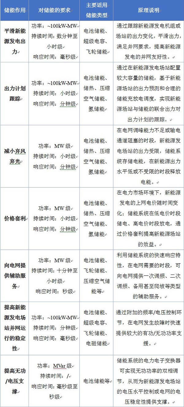 表1儲能與可再生發電配合的典型應用和要求