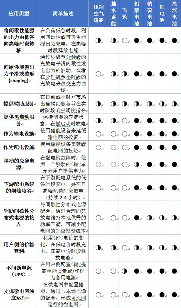 表2不同儲能技術適合的應用類型