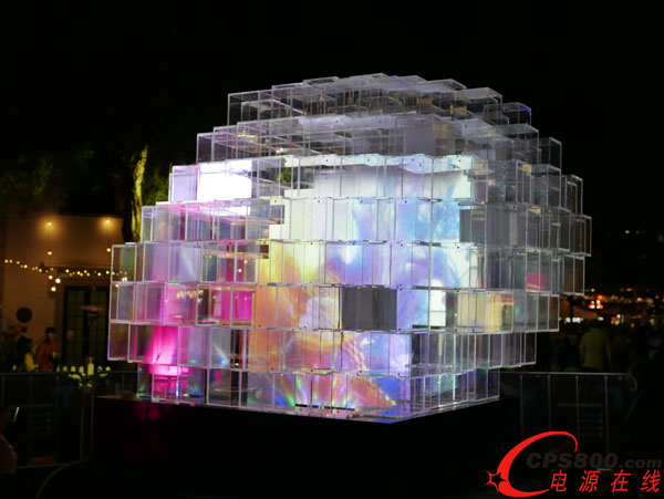 思想之光是由270個亞克力立方體搭建而成,形狀是一個由像素組成的巨型人腦,能夠根據手勢動作做出相應的反應,并投射不同的動畫和不同亮度的光線。
