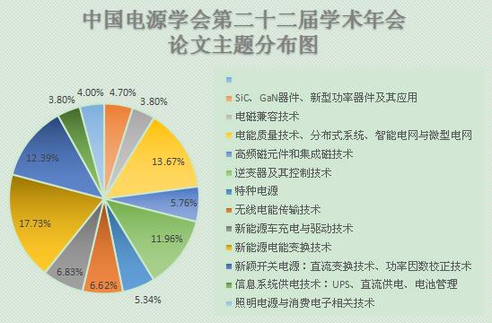 本屆年會論文涵蓋了電源行業產學研用各個領域,包括:新穎開關電源:直流變換技術、功率因數校正技術,逆變器及其控制技術,SiC、GaN器件、新型功率器件及其應用,高頻磁元件和集成磁技術,新能源電能變換技術,電能質量技術、分布式系統、智能電網與微型電網,照明電源與消費電子相關技術,特種電源,電磁兼容技術,無線電能傳輸技術,信息系統供電技術:UPS、直流供電、電池管理,新能源車充電與驅動技術以及其他電源相關等內容。其中,新能源電能變換技術,電能質量技術、分布式系統、智能電網與微型電網與新穎開關電源:直流變換技術、功率因數校正技術等主題倍受關注,新能源與智能化正在成為電源行業發展的新熱點與新趨勢。