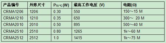 CRMA系列電阻的電阻從150Ω到75MΩ,公差只有±0.5%,溫度系數(shù)為100ppm/℃,功率等級從0.30W到1.0W。器件有涂焊膏的鎳阻擋層或涂焊膏的無磁端接,有三面卷包或只從頂部倒裝芯片的配置。