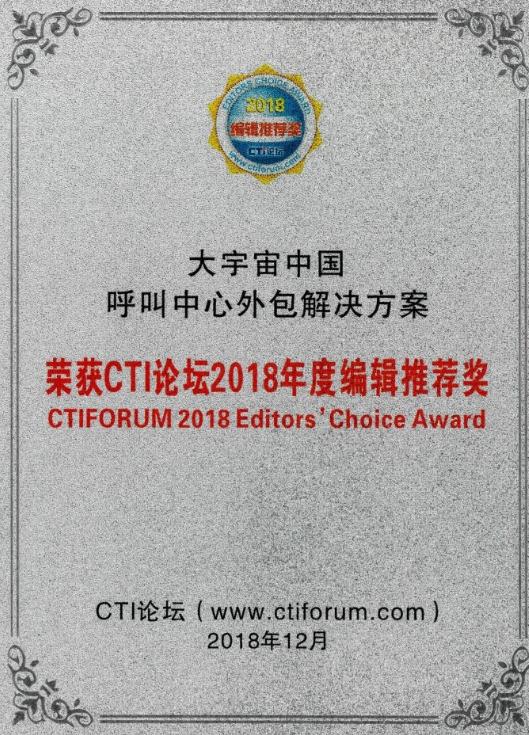 由CTI論壇主辦的“年度編輯推薦獎”自2011年推出以來至今已成功舉辦了8屆,受到廣大行業內人士的高度認可。該評選采取“自薦/推薦參選+專家調研”的形式,共有近百家企業報名參與。作為中國領先的專業在線媒體和信息服務機構,CTI論壇依托多年來積累的強大行業資源和經驗,嚴格推選出2018年度ICT領域(呼叫中心、企業通信、增值電信等)的優秀技術產品、解決方案、從業人員。transcosmos China憑借多行業、多領域、多語種的高品質呼叫中心外包服務獲得業界認可,蟬聯“呼叫中心外包解決方案“獎項。