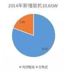 2014年新增裝機10.6GW,分布式2.05GW,占19.34%
