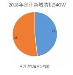 2018年預計新增裝機54GW,分布式28GW,占51.85%