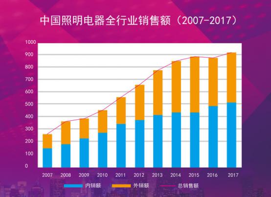 近年來,我國照明行業的發展堪稱神速。以去年為例,2017年我國照明電器行業整體銷售額約為5800億人民幣,比2016年的5600億人民幣增長約3.6%。外銷也從2016年的388億增長至412億美元。