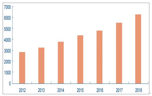 2012-2018年中國智能電表出口量持續增長(萬臺)