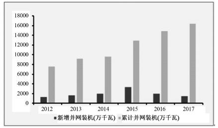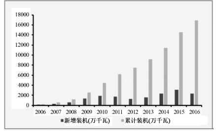 2016年之前,國內風電行業發展迅猛。2006年全國累計風電吊裝容量僅為2.54GW,到2015年累計吊裝容量則達到145.38GW,復合增速超50%。根據國家能源局數據,2015年新增并網容量高達32.97GW,同比增長66.43%。2016年國內風電行業發展開始放緩,進入低谷期,新增裝機量明顯下降。2016年新增裝機并網容量為19.30GW;2017年新增并網裝機量繼續下滑,僅為15.03GW,同比下降22.12%。