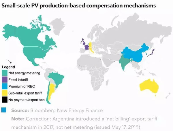 雖然歐洲與美國的上網電價機制在早期極具吸引力,但兩種機制都未能擴大。兩種政策都造成了政府用其他無光伏系統的電力用戶繳納的電費補貼光伏發電用戶,錯誤地鼓勵項目設計過大,為電網帶來沖擊,同時也阻礙了用戶側儲能系統的發展。