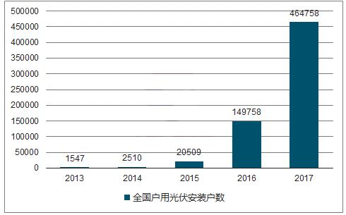 2017年全國新增戶用光伏46.5萬戶,是2016年的3.1倍。2017年,國家電網(wǎng)經(jīng)營區(qū)新增接入居民分布式光伏發(fā)電并網(wǎng)戶數(shù)31.5萬戶,是2016年新增并網(wǎng)戶數(shù)的4.5倍。新增并網(wǎng)容量307.6萬千瓦,同比增長208%。