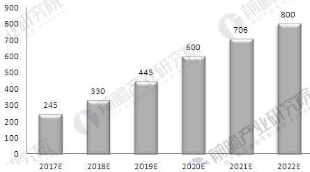 2017-2022年全球電動汽車充電樁行業市場規模預測(單位:萬樁)