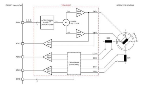 圖示1-大聯大世平推出基于TI微控制器的分立式旋轉變壓器前端參考設計的系統方案圖