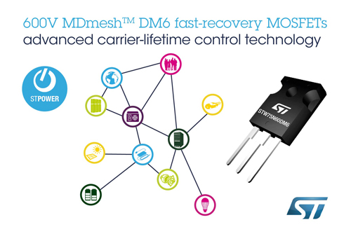 中國,2019年1月22日 - 意法半導體的MDmesh™ DM6 600V MOSFET含有一個快速恢復體二極管,將該公司最新的超結(super-junction)技術的性能優勢引入到全橋和半橋拓撲、零電壓開關(ZVS)相移轉換器等通常需要一個穩定可靠的二極管來處理動態dV/dt的應用和拓撲結構里。
