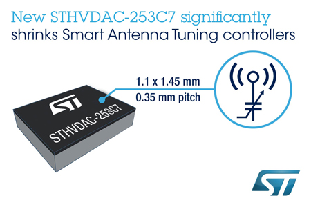 中國,2019年1月18日 - 意法半導體的STHVDAC-253C7數字電容控制器用于控制可調電容,例如,意法半導體的STPTIC系列可調電容,這款產品的優點是可以縮小天線調諧電路的尺寸、降低物料清單(BoM)成本和功耗,穩定智能手機的射頻性能。將STHVDAC-253C7控制器和STPTIC電容用于阻抗匹配和頻率調諧,幾乎可以完全消除外部環境變化對射頻性能的影響,讓手機用戶可以獲得更強的接收信號,更少的掉話次數,更快的數據速率,和更長的電池續航時間。