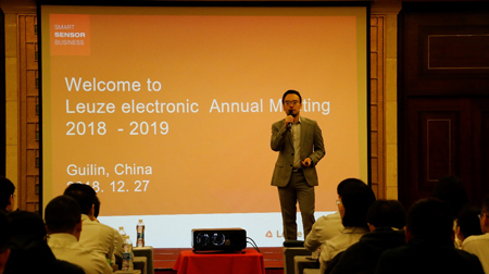在大會上,勞易測電子Leuzeelectronic中國區總經理張羽先生帶領大家共同回顧了精彩難忘的2018,更是感謝合作伙伴和客戶的支持和信任,以及全體員工在這一年的辛苦付出。張羽先生分享道:»今年我們迎來了深圳總部和上海分公司喬遷新址,各種人性化的設計,旨在吸引和留存人才,辦公室內還配備了一流的技術培訓中心,與客戶分享行業知識和經驗。辦公環境的改善也代表了我們對中國市場發展的信心。今年我們也攜帶了多個領域的全系列傳感器解決方案即技術創新能力在IAS工博會、CeMAT物流展、AHTE工業裝配與傳輸技術展以及CMEF醫療器械展精彩亮相。在7月份,我們還舉辦了汽車行業制造設備安全認證服務研討會和包裝行業推廣會,我們的行業經理給在會議上分享了干貨滿滿的專業知識及解決方案,并對當下客戶所面臨的挑戰進行剖析,幫助客戶更好地應對各種實際問題。»