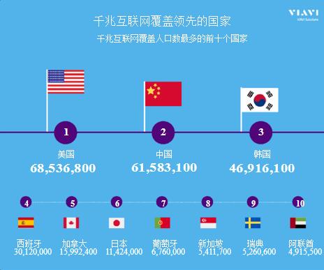 中國(guó)上海,2019年11月28日–VIAVI Solutions公司(納斯達(dá)克股票代碼:VIAV)最新研究顯示,當(dāng)前來(lái)自全球51個(gè)國(guó)家及地區(qū)的約3.54億用戶已可使用千兆互聯(lián)網(wǎng),占全球人口的5%。其中,中國(guó)自2018年八月以來(lái)劇增4,100萬(wàn)用戶,現(xiàn)有6,150萬(wàn)用戶可使用千兆互聯(lián)網(wǎng),已躍居全球第二大千兆互聯(lián)網(wǎng)使用國(guó)。