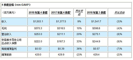 下表概列安森美半導體2019年第1季度的GAAP及non-GAAP展望。