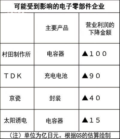 首先是向華為供應充電電池的TDK。華為的智能手機以高端產品為主,充電電池的收益性也相對較高。用于去除噪音等的電感器和用于手機攝像頭的致動器也有可能受到影響。按營業利潤計算,有可能導致最多90億日元的下降。