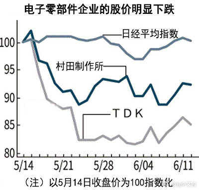 股價已開始體現相關影響。如果以美國宣布禁運之前的5月14日收盤價為基準,TDK和村田的股價在最近1個月內下跌了1成左右。同樣涉足電子零部件、影響相對較少的日本電產等則股價持平,與其形成對照。