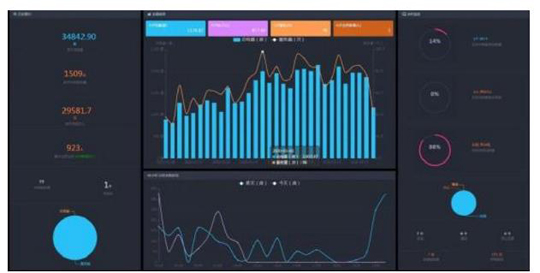 下圖展示了此系統中的運營沙盤模塊,通過該模塊的數據分析和圖表展示,商戶可以更好的對自己的運營狀況作出判斷,有利于商戶的下一步決策,真正做到對運營數據的嚴格把控。