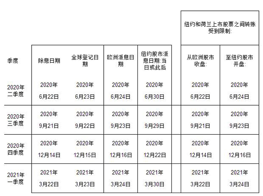 下表是季度分紅的完整時間表: