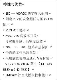 這款纖薄的模塊采用底盤或PCB安裝封裝,整合了一款DC-DC轉換器、涌流保護以及可選模擬或數字通信技術。該DCM提供低噪聲、快速瞬態響應、高效率和高功率密度。