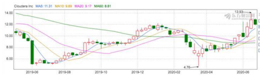 今年六月,Cloudera發了FY21Q1財報,對比去年,營收增長12%,利潤增長44%,大客戶和訂閱服務占比也穩定增長,均超分析師預期,于是股價一路上漲,疫情中逆勢重回高地。