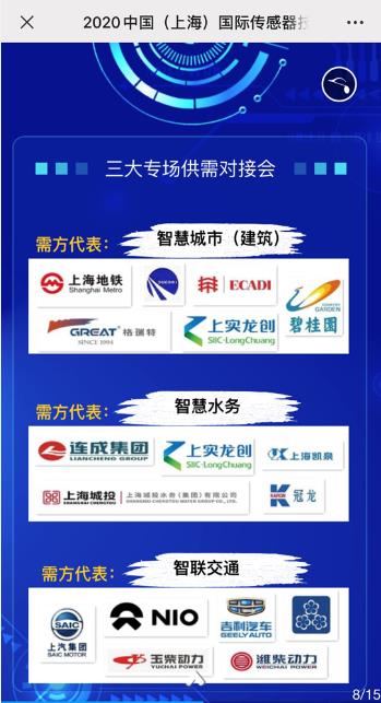 本次對接會,旨在打造智慧城市,智慧水務,智聯交通行業對接盛典,以上海地鐵、碧桂園、格瑞特等為代表的智慧城市買方將聯合出席盛會,希望和煙霧傳感器、壓力傳感器、紅外傳感器等傳感器廠商碰撞激發靈感。智慧水務專場云集了連城集團、上實龍創、上海凱泉、上海城投等買方代表,重點關注無線傳感器、壓力傳感器等。智聯交通專場匯聚了上汽集團、吉利汽車、NIO等實力買家,致力于通過傳感器快速實現電氣化、智能化。圈內大買家云集,充分體現了SENSOR CHINA的超強凝聚力。