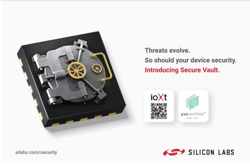 Silicon Labs的Secure Vault是一套全新的、最先進的安全功能,旨在協助聯網設備制造商應對不斷增長的IoT安全威脅和法規壓力。Silicon Labs的Wireless Gecko Series 2平臺通過將基于硬件信任根的安全啟動、安全調試、防篡改、可驗證的安全身份識別以及具備物理不可克隆功能(PUF)的密鑰管理技術等一流的安全功能相結合,充分發揮了Secure Vault的技術優勢,大幅降低了IoT安全漏洞和知識產權受損的風險。欲了解有關Secure Vault和物聯網安全性的更多信息,請訪問這里。